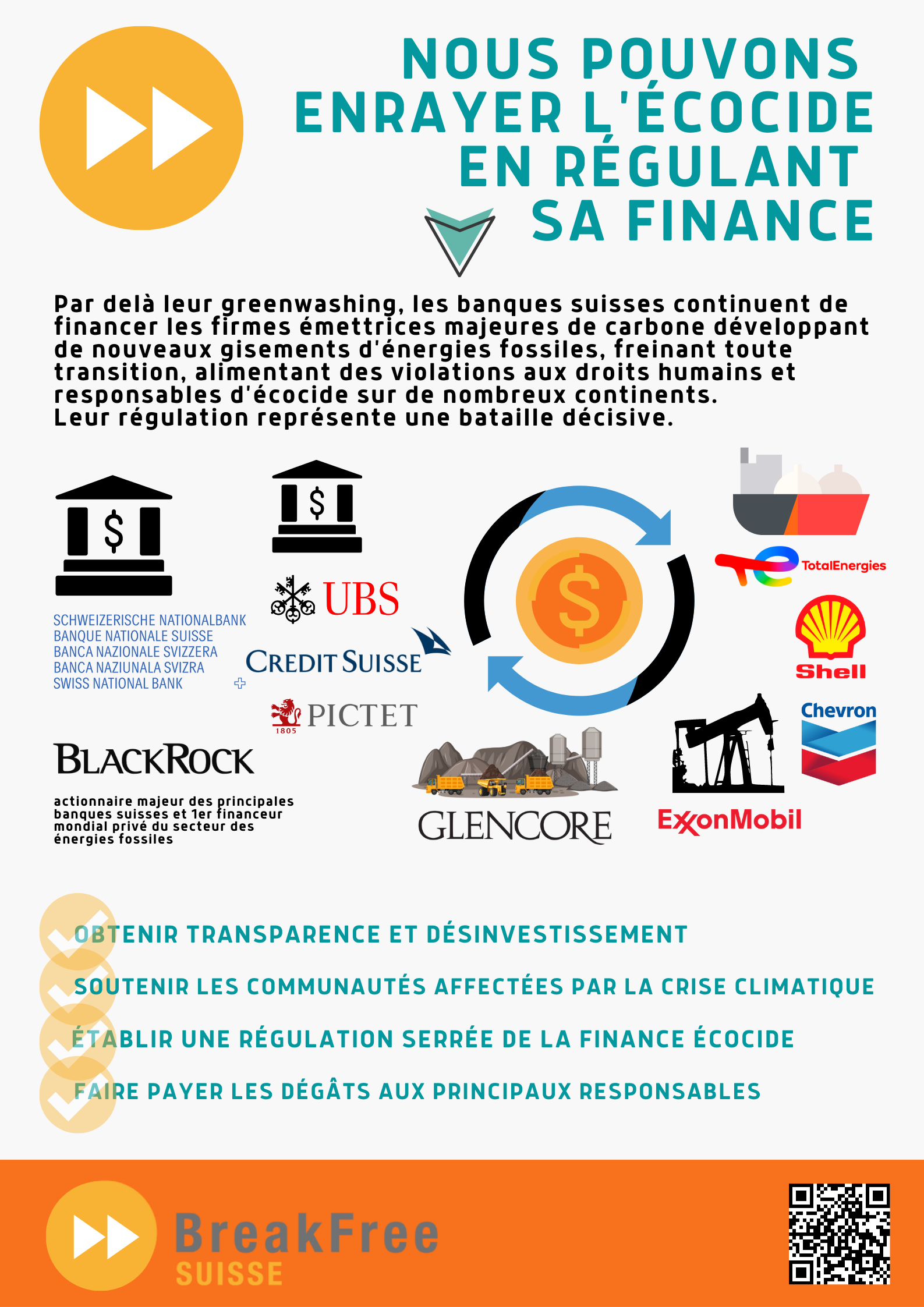 Samedi 27 Septembre – Uni mail, salle MS150 – Genève À l’heure où la planète brûle et où les peuples réclament justice, du Congo pillé pour ses minerais au génocide en cours à Gaza, la finance suisse se proclame championne du développement durable tout en continuant...