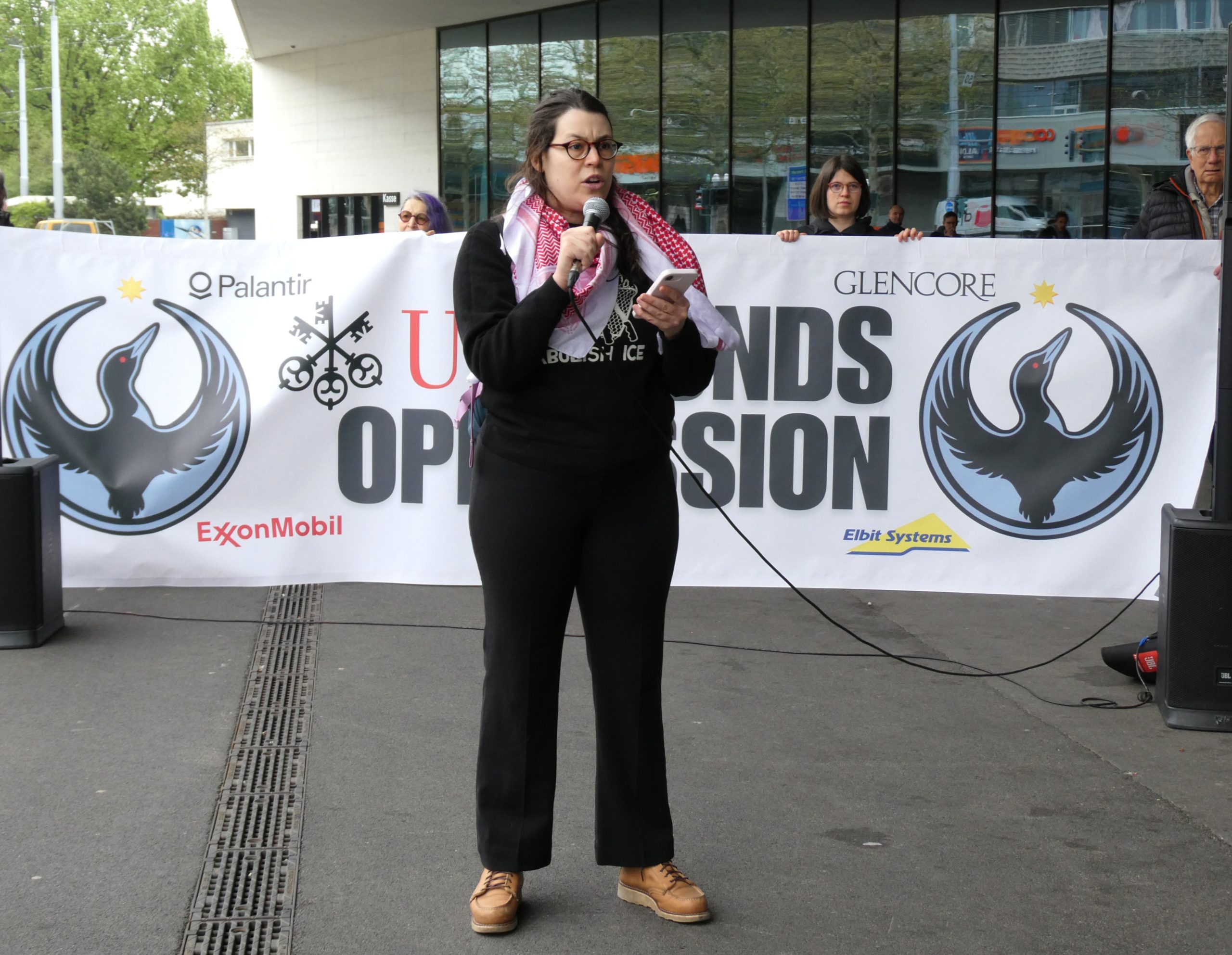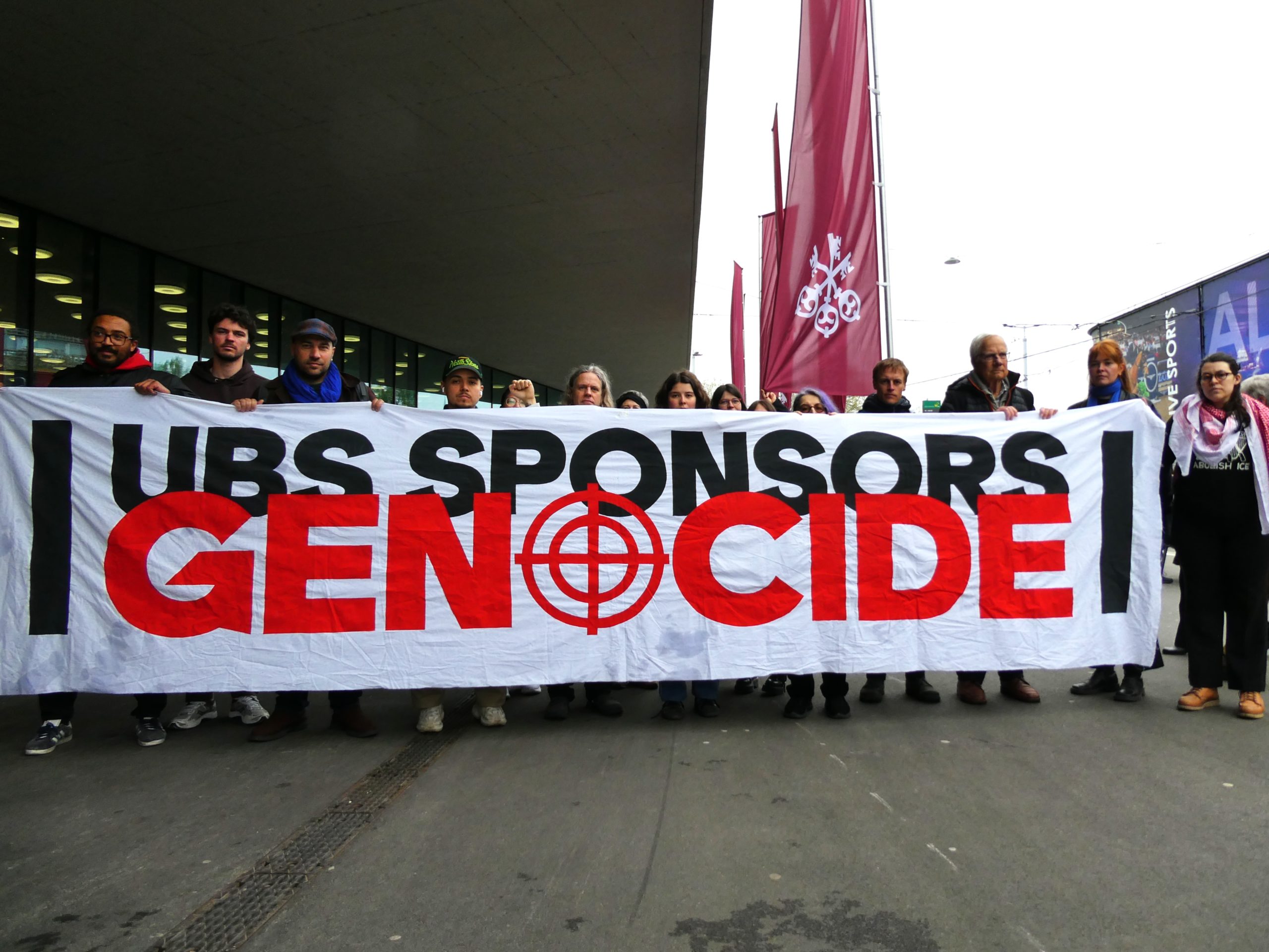 “We’re here to expose the truth: UBS’s money is blood money. It’s time for them to choose justice over profit.”