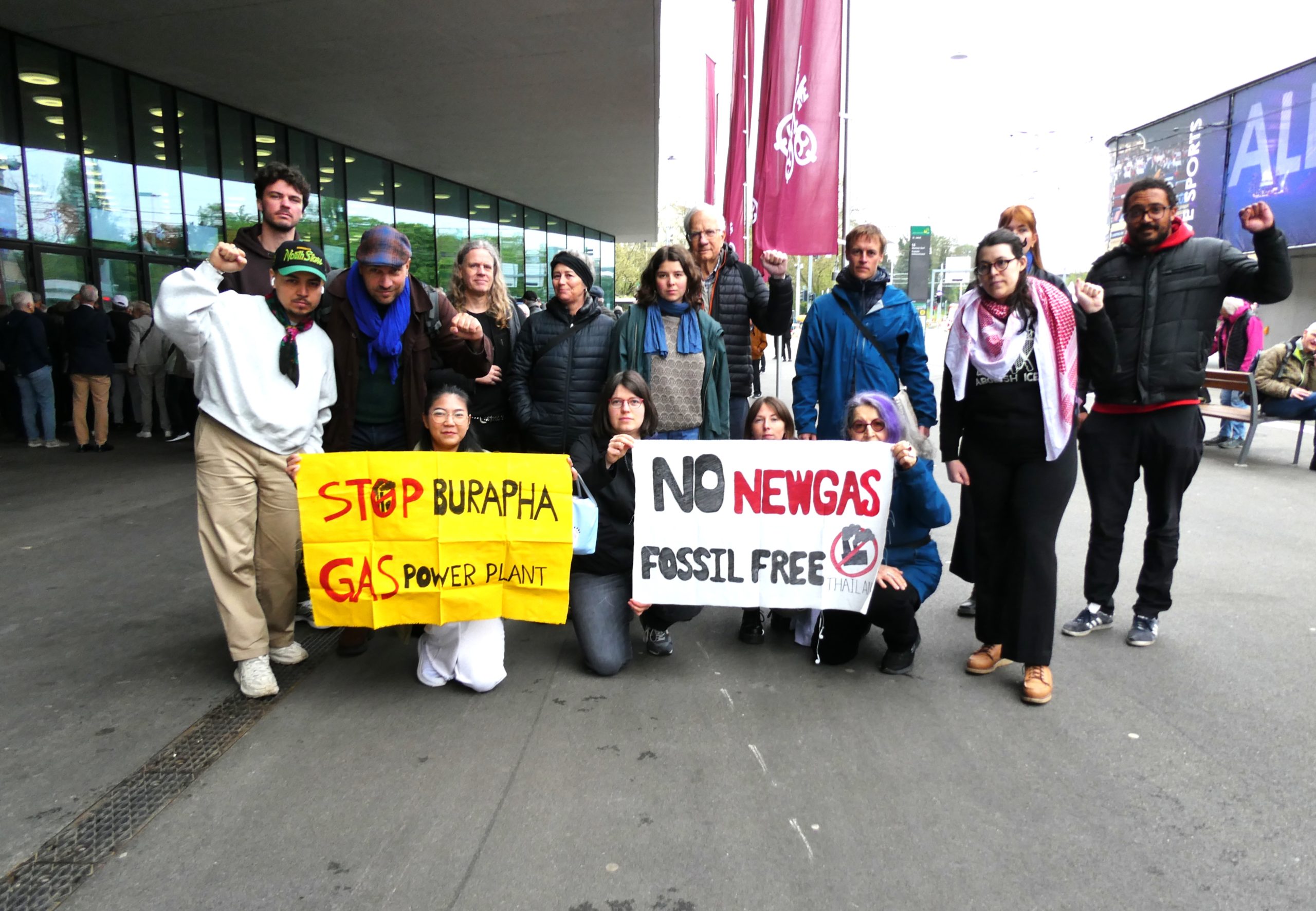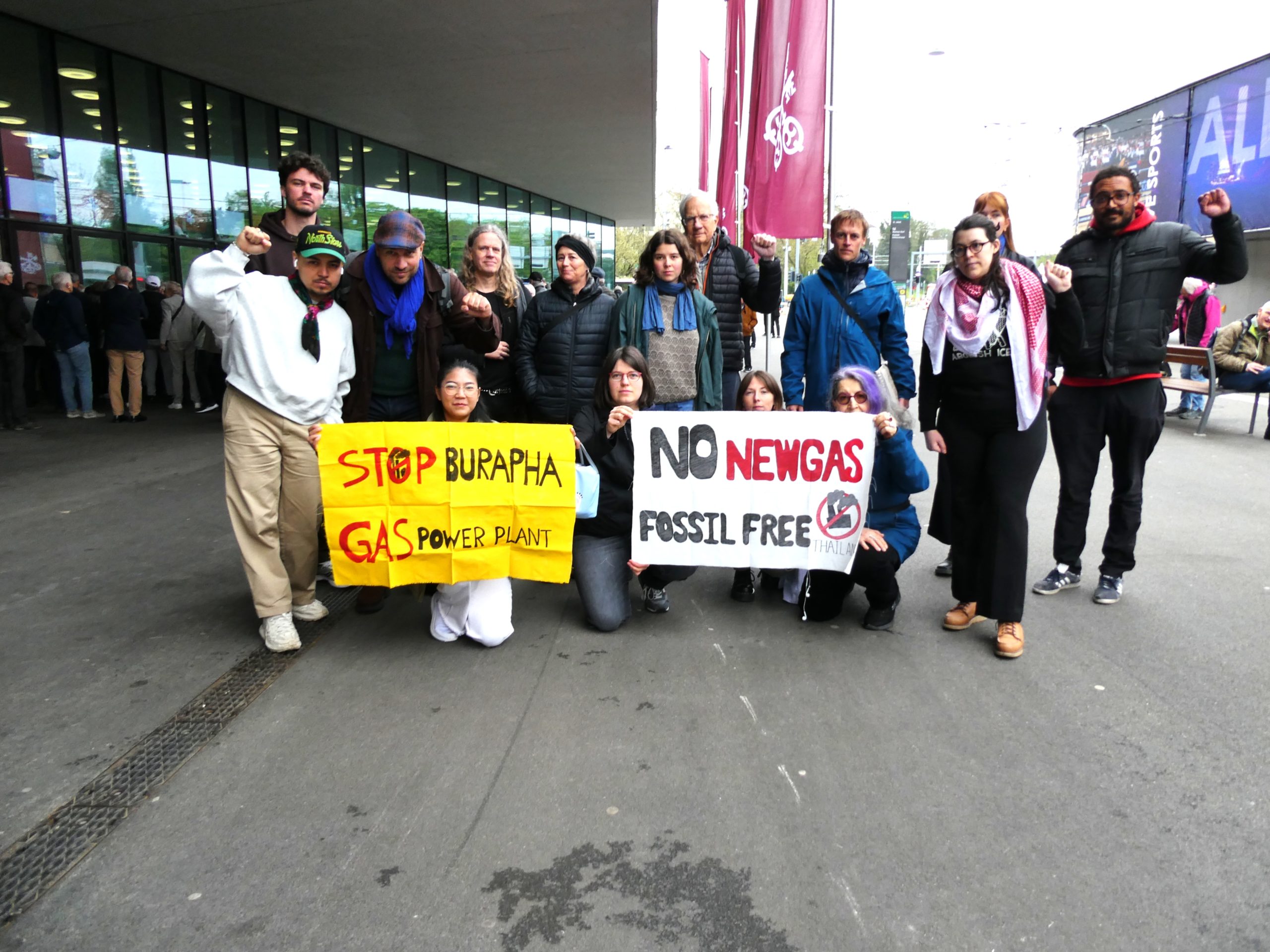 Basel, Switzerland – Today, a coalition of climate justice, human rights, and anti-racism organizations staged a peaceful but powerful protest outside the UBS Annual General Meeting (AGM) in Basel. The action, part of the Stand Up for Minnesota tour, brought together activists from Switzerland, the United States, and Thailand to demand that UBS immediately divest from companies enabling human rights violations.