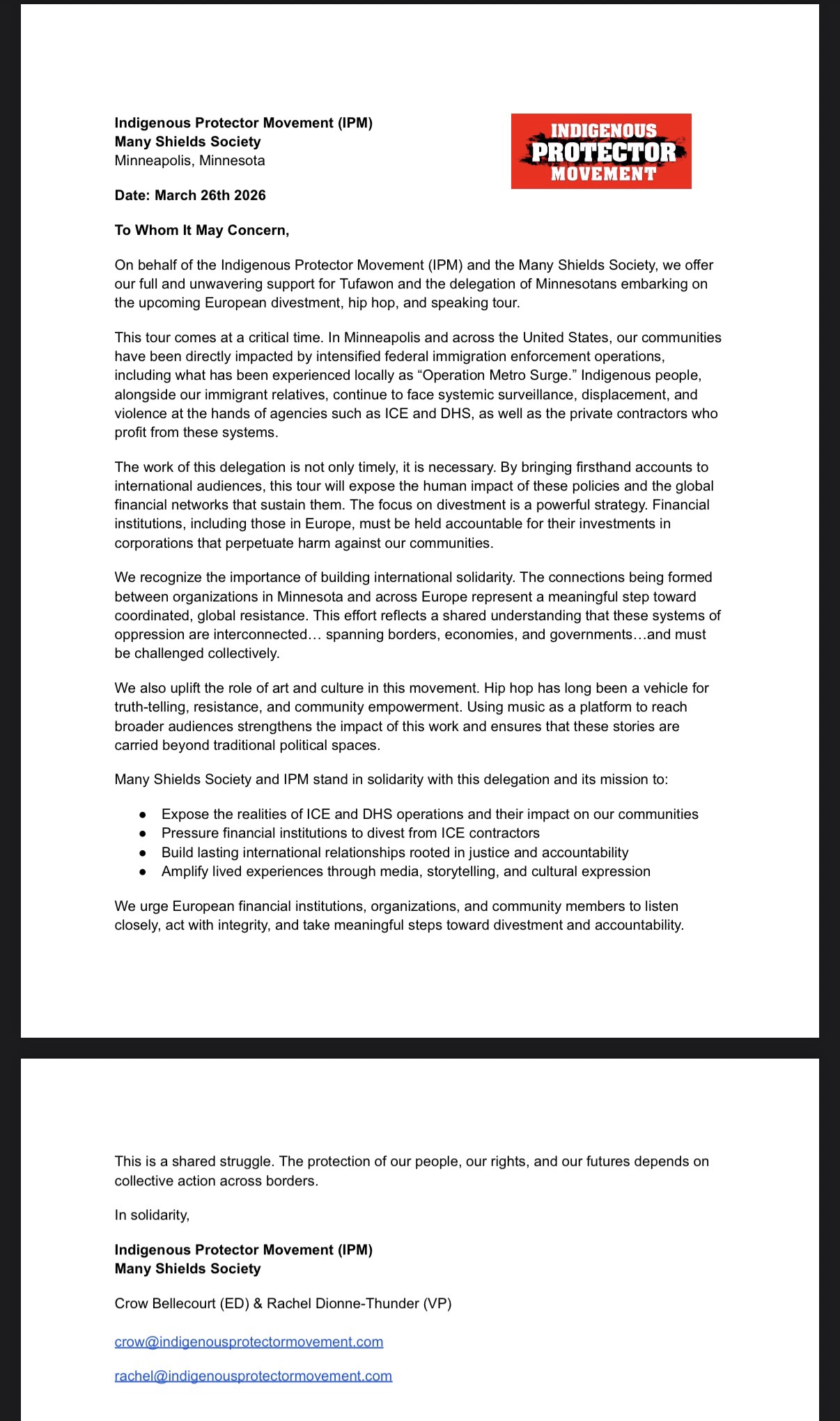 - Connect europeans groups and organizations with the Minnesota resistance to ICE and fossil fuel expansion.